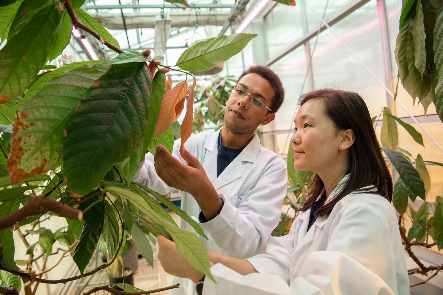 Researchers work in greenhouses to study plant growth, improve crop yields, and develop sustainable farming practices.